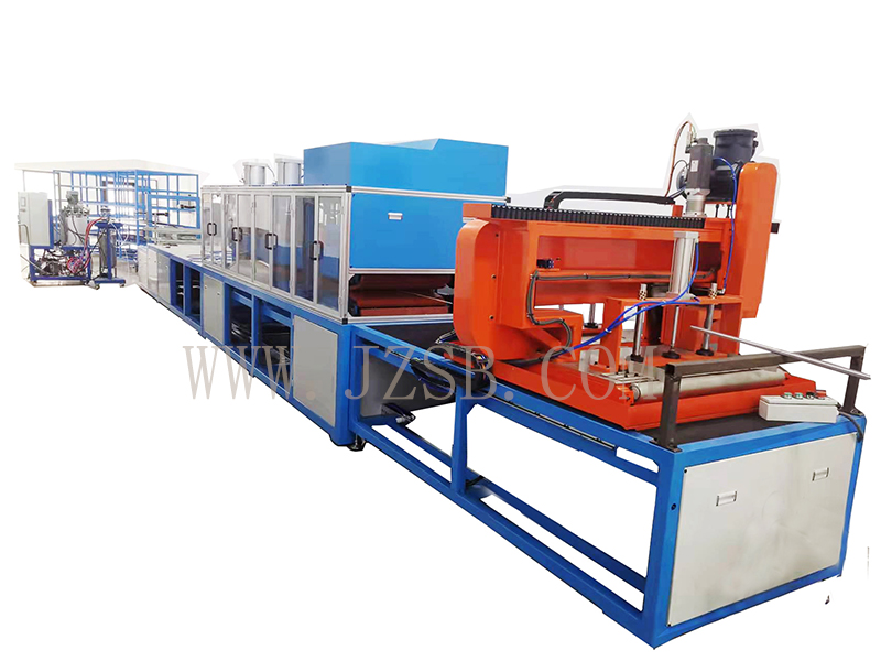 履带式牵引拉挤机主要用于复合材料型材拉挤成型,生产线主要由收卷设备、切割设备、牵引设备、计米装置、模具、胶槽组成。